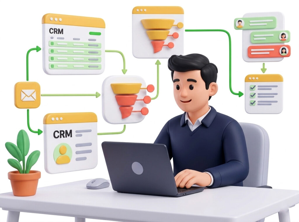 Creamos embudos estructurados que guían a cada visitante hacia la acción, automatizamos la comunicación para mantener el contacto constante y organizamos tu CRM para que tengas visibilidad total de cada oportunidad.
